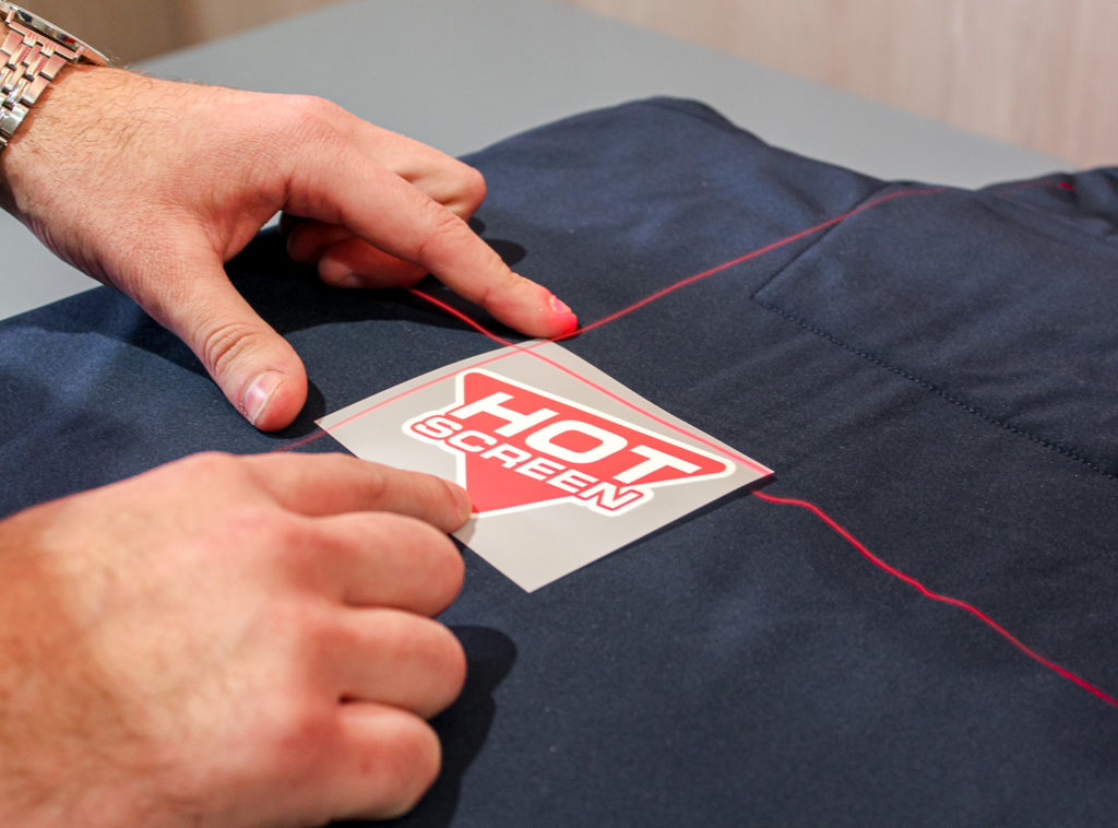 Itse kehittämämme ristilaser on tehty apuvälineeksi, jonka avulla lämpösiirtomerkin saa sijoitettua aina samaan kohtaan vaatetta. Sitä voidaan käyttää myös vaatteen asettamiseen aluslevylle ja siten korkealaatuisen tuloksen varmistamiseksi.